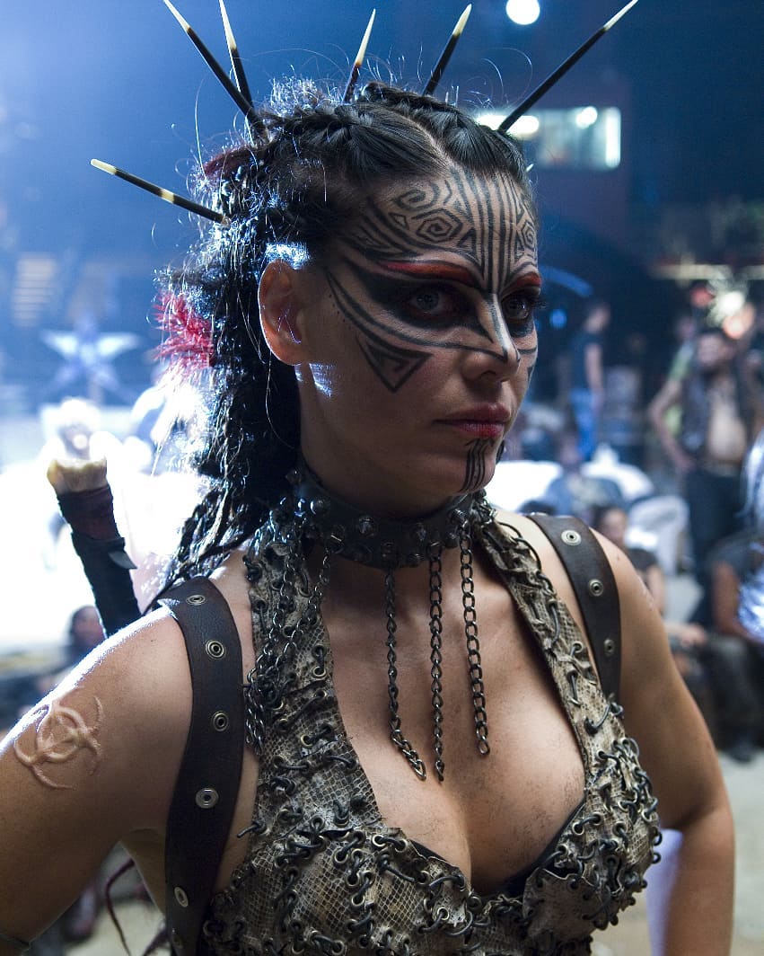 The Tribe to serial dla nastolatków z początku lat 2000, osadzony w Nowej Zelandii, gdzie tajemniczy wirus zniszczył wszystkich powyżej osiemnastego roku życia, pozostawiając świat w rękach odizolowanych grup dzikich dzieciaków. Brzmi jak „Władca much”. Robi się dość mrocznie, obejmując uzależnienie od gier, śmierć (i to w dużych ilościach), religijne sekty i zwykłe dramaty nastolatków – nieplanowane ciąże i miłosne trójkąty… ale wszystko to na tle postapokaliptycznym, z wiecznie płonącymi ogniskami i brakiem dorosłych. Każdy ma ewoluujący „wygląd” z malowaniem twarzy i dopasowanymi strojami, a niektóre z nich są bardziej udane niż inne! Ebony rozpoczyna serię jako współczarny charakter ze swoim chłopakiem w stylu „szkolnego Marilyn Manson” i staje się bardziej relatywna w trakcie serialu – a choć jej wygląd nieco się zmienia sezon po sezonie (jak u wszystkich), jej szablonowy płomień na czole, splecione włosy i czarno-czerwone „kurtki bojowe” są stałym elementem.